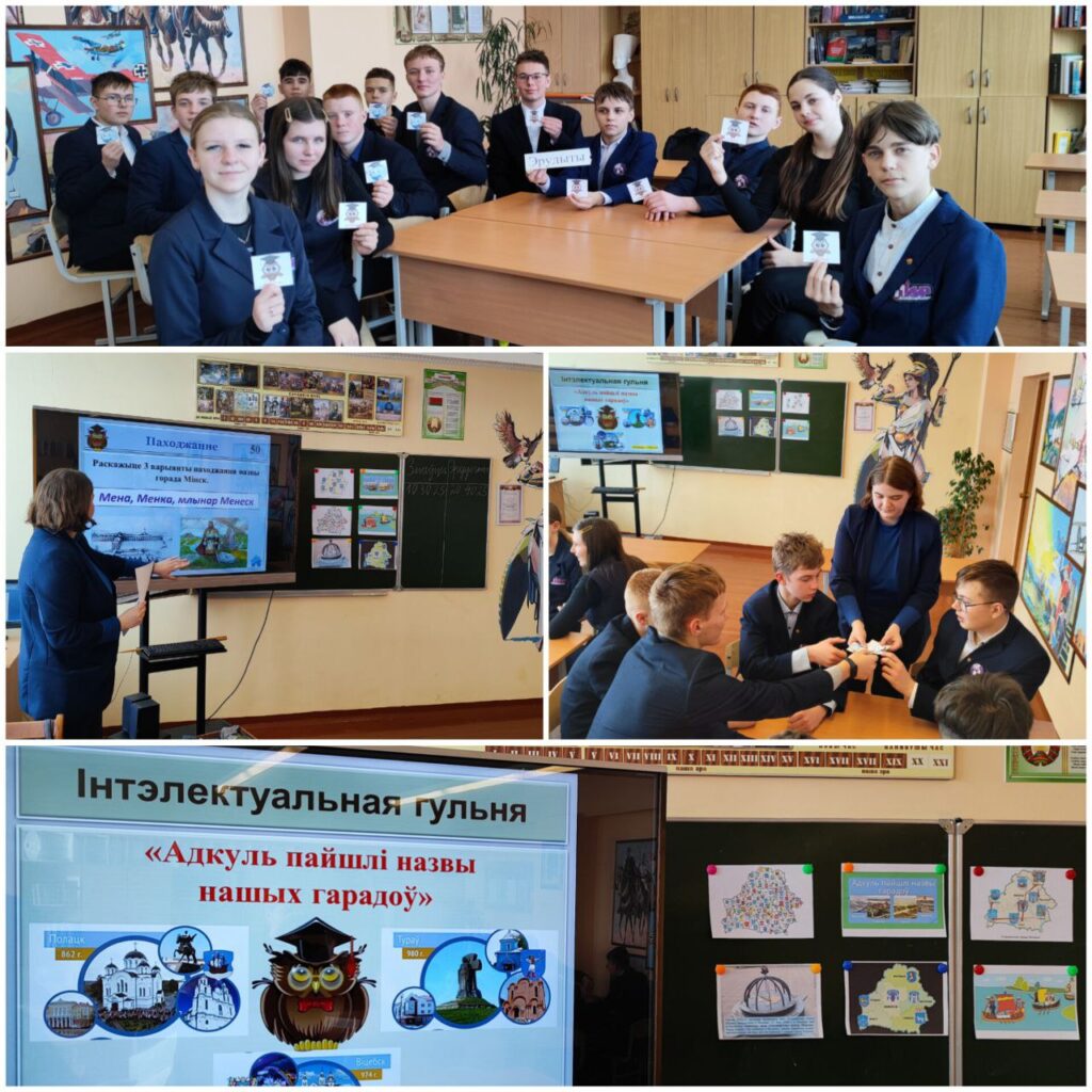 📌18 лютага ў 9 «А» класе ДУА «Сярэдняя школа г.п.Мір імя Г.І.Сташэўскай» з мэтай выхавання ў вучняў цікавасці да гістарычнага мінулага беларускай зямлі была праведзена інтэлектуальная гульня «Адкуль пайшлі назвы нашых гарадоў».