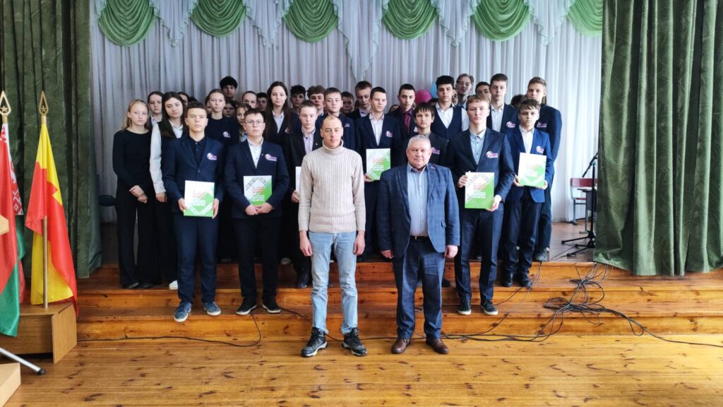 26 февраля 2026 года в государственном учреждении образования «Средняя школа г.п.Мир им.А.И.Сташевской» Кореличского района Гродненской области состоялось мероприятие в рамках информационно-образовательного проекта «Школа Активного Гражданина» для учащихся VIII — XI классов, которое было проведено в форме брифинга. Цель мероприятия – воспитание у подрастающего поколения чувства патриотизма, гражданственности, гордости за свою Родину, формирование представлений о том, что созидательный труд белорусов является проявлением патриотизма, основой достойной жизни и экономической безопасности государства. В подготовке мероприятия принимали участие учащиеся IX «А» класса и педагог, выполняющий функции классного руководителя IX «А» класса Петрович Людмила Владимировна. Почетными гостями заседания стали представители Мирского филиала ОАО «Гродненский ликеро-водочный завод»: директор завода Сергей Иванович Тур и главный инженер завода Андрей Леонидович Мазур.