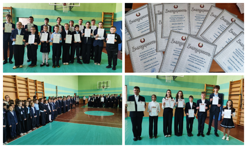 21 учащийся 3-11 классов награждён благодарностью за отличную учёбу и примерное поведение по итогам 3 четверти. Также ребятам вручены грамоты и дипломы за участие и победу в различных творческих и интеллектуальных конкурсах. Поздравляем все учащихся и педагогов с началом новой четверти и желаем успехов и новых достижений!