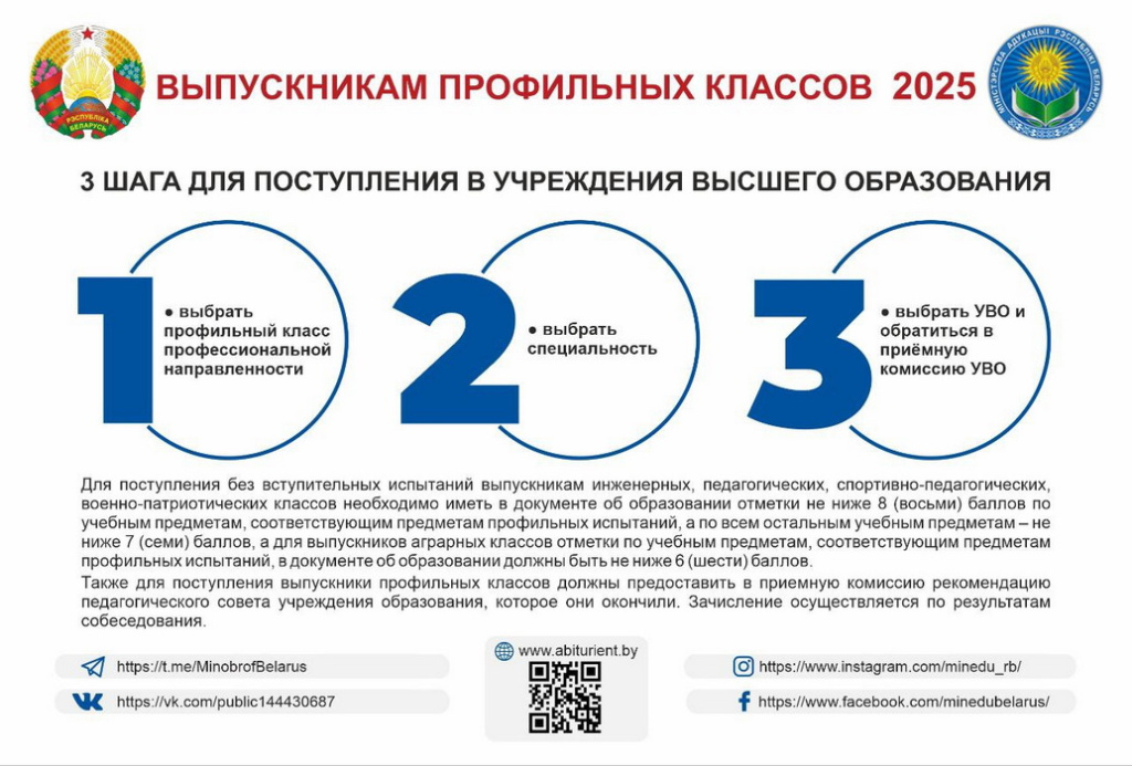 • Выпускники профильных классов профессиональной направленности могут поступать по результатам собеседования!