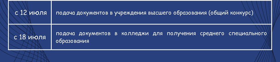 Абитуриенты, которые не проходят по конкурсу для получения высшего образования на условиях целевой подготовки, вправе участвовать в конкурсе на общих основаниях (необходимо предоставить сертификаты централизованного экзамена (ЦЭ) и централизованного тестирования (ЦТ)).