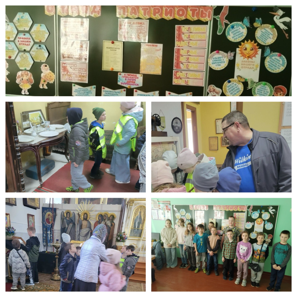 В первый день работы лагеря отряд «Патриоты» посетил усадьбу-музей «Мирский посад» Сакеля В. Я. Ребята узнали много интересного об истории нашего посёлка, познакомились с музейными экспонатами. Также ребята посетили Николаевский костел и Свято-Троицкую церковь.